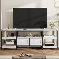 Mobile TV moderno e minimalista, largo 180 cm, adatto per TV da 80 pollici, con 3 mobili contenitori, 1 cassetto, 5 gambe robuste, mobile basso per soggiorno, supporto multimediale