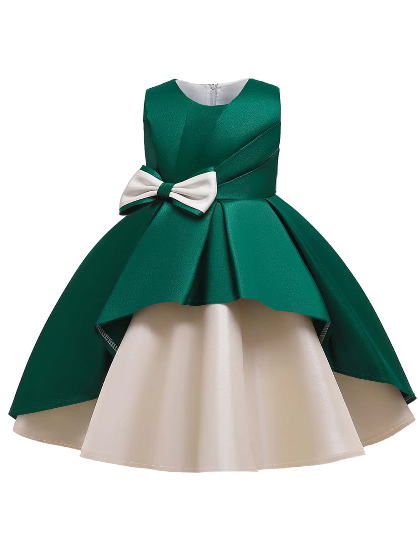 Abito formale in raso con decorazione in vita a fiocco per ragazza Tween, elegante e adatto per feste di compleanno (accessori per capelli esclusi)