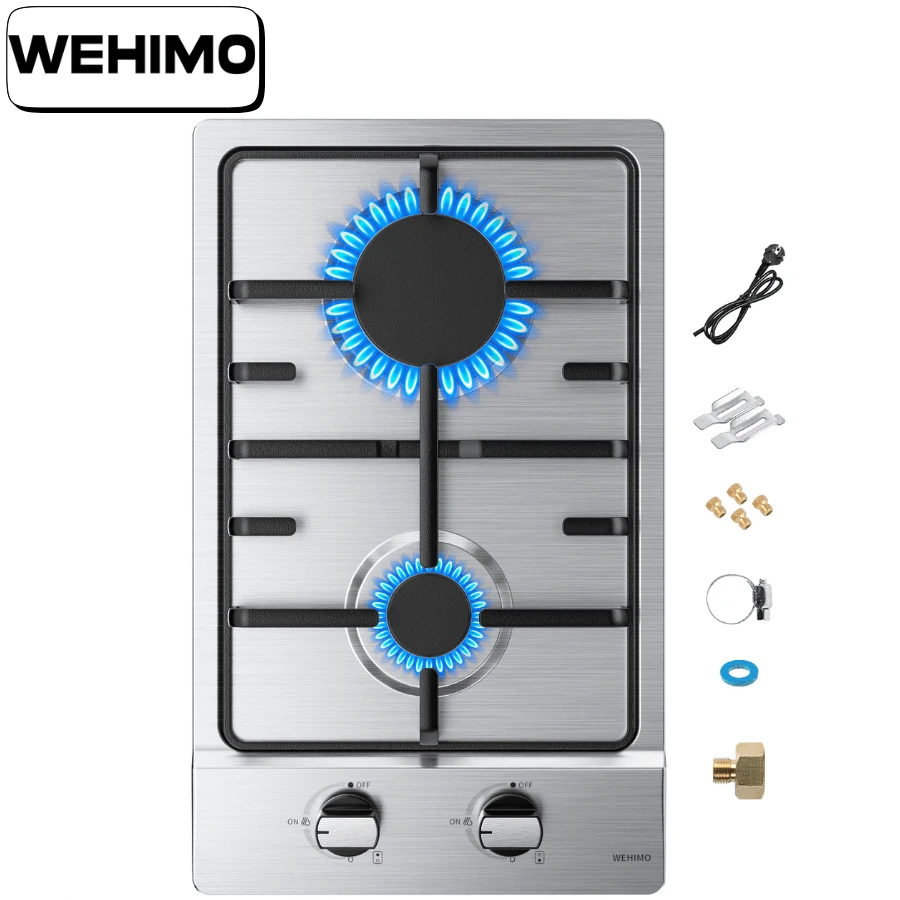 IsEasy Piano cottura a gas WEHIMO Domino con 2 fuochi, piano cottura a gas da incasso in acciaio inox 30 cm 3700 W 2 zone di cottura (2700 W + 1000 W), piano cottura a gas Domino per gas propano e gas naturale, adatto a tutte le pentole