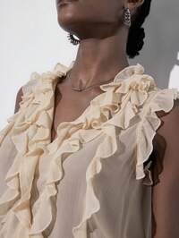 Aveloria ModichicAveloria Modichic Blusa avorio con volant multistrato, lavorazione artigianale raffinata, stile retrò elegante, adatta per l'ufficio e il pendolarismo, minimalista ed elegante, per occasioni formali, abbinamento quotidiano, design con collo alto, dettagli con volant multistrato, vestibilità slim, tessuto leggero in chiffon. Parole chiave di moda: camicia da dea, leggera, romantica francese, elegante retrò, essenziale per l'abbigliamento professionale, stile fresco, top di design, donna elegante, articolo elegante. Nuova blusa multistrato con scollo a V senza maniche, in tinta unita, di per la primavera/estate in Europa e America #1 Bestseller