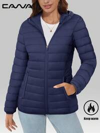 CavvaOutdoorCavva Giacca imbottita con cappuccio da donna, antivento, leggera, trapuntata, con fodera, con chiusura lampo, casual, invernale, calda, con 4 tasche, adatta per escursioni, campeggio, lavoro, in pile