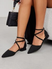 CUCCOO CHICEST Scarpe comode da donna con punta affusolata e cinturini incrociati, tacco basso, adatte per laurea, ballo di fine anno, estate, Natale, Capodanno, San Valentino