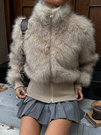in Scollo a V Cappotti in pelliccia sintetica da donna