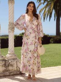 Enchnt Abito lungo con scollo a V profondo, maniche lunghe e volant, con stampa romantica di rose color albicocca e viola, dolce ed elegante, adatto per vacanze, appuntamenti, feste, lauree, matrimoni, eventi estivi, abiti estivi da donna, abiti da spiaggia, abiti eleganti da festa Enchnt Gonna mini elegante e romantica da donna, con fiori luccicanti color champagne e oro, a forma di cuore, stile linea A, adatta per compleanni, feste, appuntamenti romantici, vacanze, lauree, stile fairycore, estate, adatta per invitate a matrimoni, concerti, Pasqua