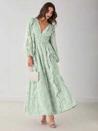 ENCHNTEnchnt Abito lungo da donna romantico a maniche lunghe con scollo a V, con balze, color verde pastello, romantico ed elegante, adatto per vacanze, appuntamenti, festività, laurea, matrimoni, feste, concerti, festival, Pasqua, estivo