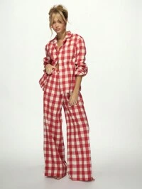 MISSGUIDED Set pigiama a maniche lunghe con motivo a quadri buffalo, abbigliamento da casa invernale, camicia con bottoni e pantaloni a gamba ampia, comodo abbigliamento da notte natalizio