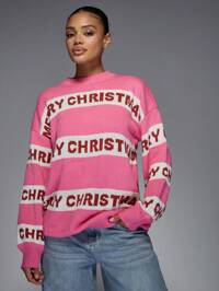 MISSGUIDED Maglione natalizio, maglione lavorato a maglia con slogan Buon Natale, maglione invernale festivo, pullover comodo e morbido, maglione oversize stagionale, regalo per feste natalizie