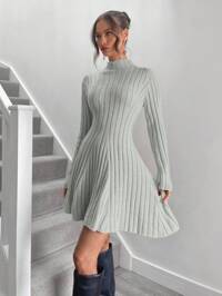 Roylia Vestito maglia a vita stretta di colore unito, casual, adatto per autunno/inverno per donna