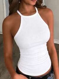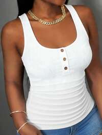 Slaydiva 2026 Primavera/Estate Nuovo Canotta Casual Versatile Bianco Tinta Unita Costine Scollo Rotondo Schiena Scoperta Donna. Adatto per Appuntamenti, San Valentino, Stagione Matrimoni, Feste, Club Sexy, Sport, Yoga, Vacanze, Spiaggia, Stile Boho, Spiagge Sabbiose, Ritorno a Scuola, Uscite Quotidiane, Feste, Tè Pomeridiano, Brunch, Outfit Aeroporto