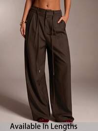 SHEIN Tall CURVESHEIN Tall CURVE Pantaloni di colore solido alla moda e versatili a vita bassa, pantaloni casual da donna di colore marrone, pantaloni a gamba ampia, pantaloni marrone per donna, pantaloni casual per donna, pantaloni casual da donna, pantaloni a gamba ampia per donna di taglia piccola, adatti per primavera, vita quotidiana, pendolarismo, scuola, riunioni, uscite, tempo libero, casual per donna