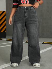 FirerieFirerie Jeans blu a zampa d'elefante in denim elasticizzato, taglia oversize, con vita alta, leggings in vita elastica, taglia oversize, leggings skinny in tessuto leggero e morbido di jersey di denim elasticizzato, adatti per yoga, sport, attività all'aperto e uso quotidiano, con tasche, modellanti