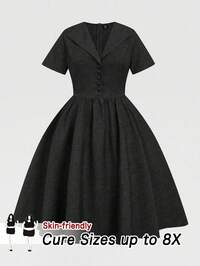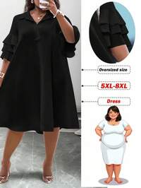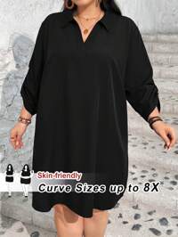 SHEIN CURVE+SHEIN CURVE+ Nuova collezione 2025 per donna - Rave, Pasqua, Stile Old Money, Country Concert, Uscite, Fairycore, Festival, Vacanza Tropicale, Adatto per Primavera/Estate, Outfit Estivi, Rave, Estate Europea, Primavera, Western Wear Plus, Concerto, Laurea, Versatile per Pendolarismo Quotidiano, Business Casual, Abbigliamento da Spiaggia Casual Minimalista - Camicia con maniche a volant, Abito midi con orlo asimmetrico, Curvy Plus, Abito da Vacanza Boho Plus Size con Maniche 8xl Abbigliamento Donna 5xl Plus Size Abito a Volant Plus Size