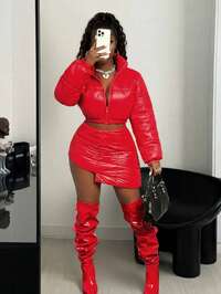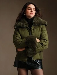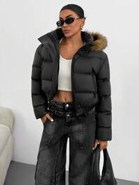 AnewstaAnewsta Cappotto imbottito corto con colletto in pelliccia lunga e soffice, adatto per autunno, inverno, uscite, elegante, formale, festa, chic, Capodanno, cappotto invernale da donna, Natale, lavoro, laurea, matrimonio